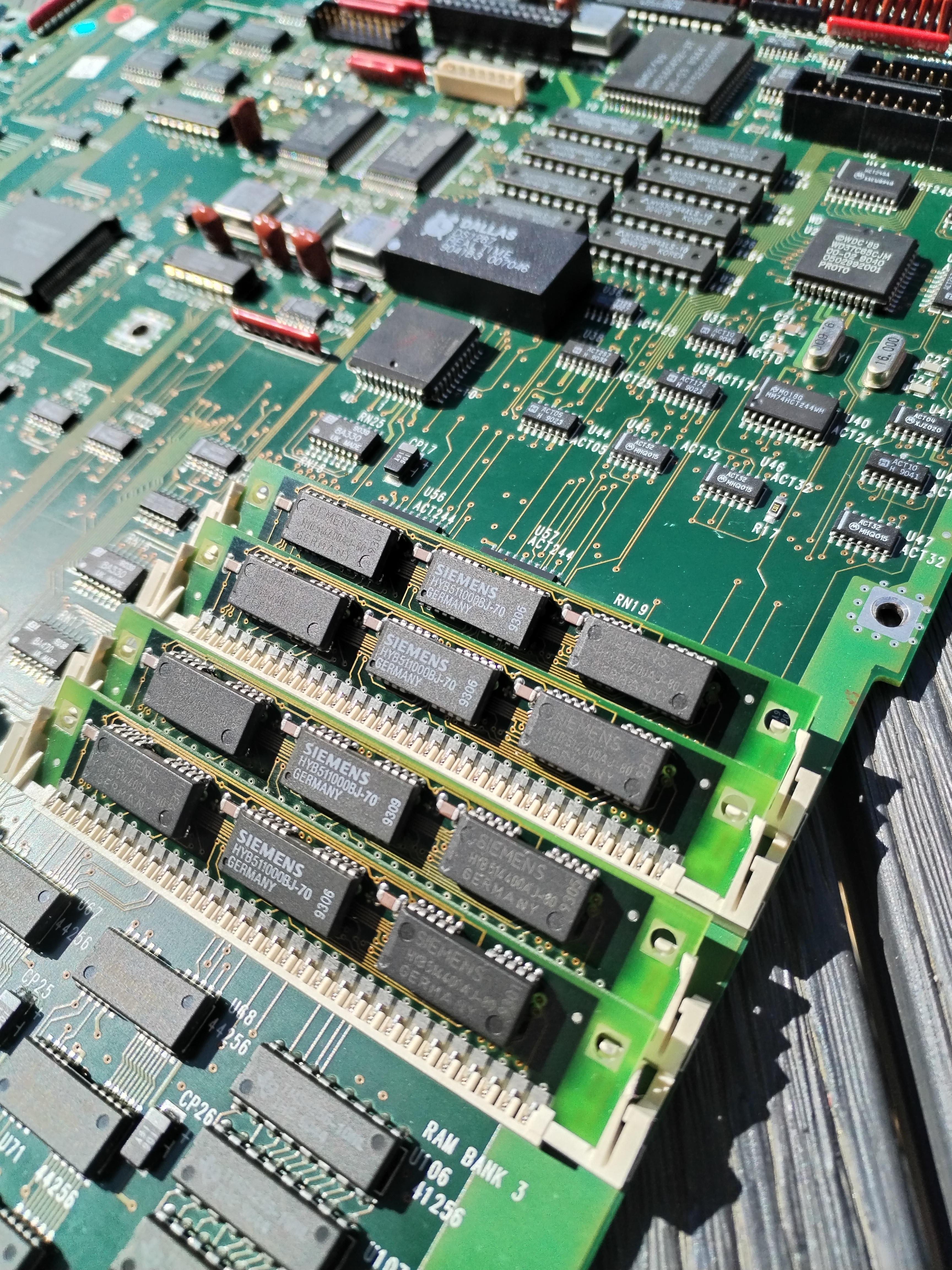 Zastosowane układy DRAM (m.in. Siemens) wskazują na pamięci o czasie dostępu rzędu 70ns, co było typowe dla tej generacji sprzętu.