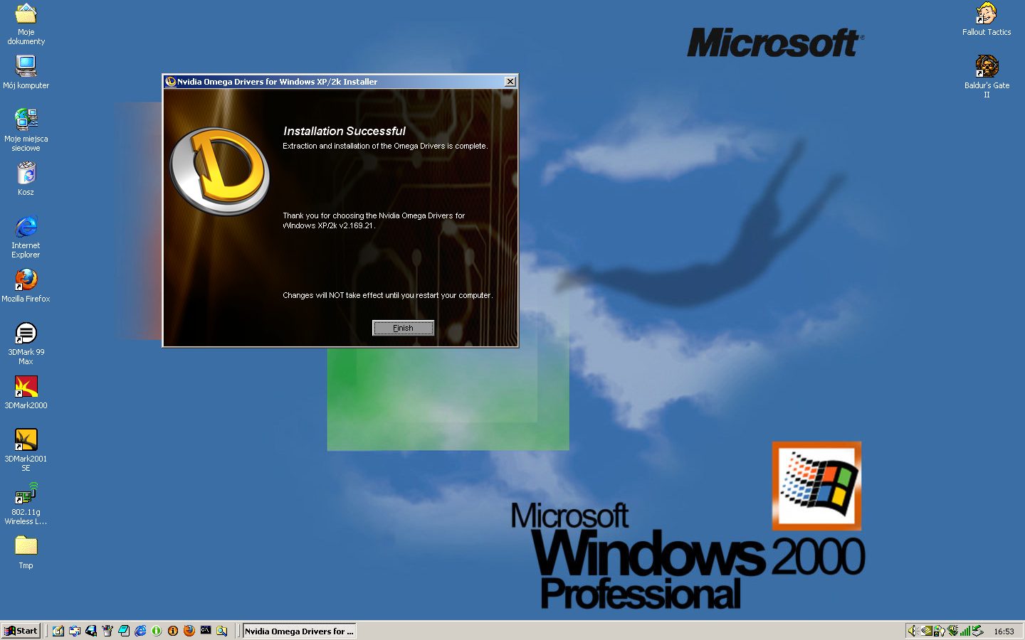 Dobrze się stało, bo ostatnio złożyłem „nowy” build posiadający dwa systemy operacyjne MS Windows 2000 oraz Windows 98 SE. Wszystko w sumie działało, chociaż z Windowsem 2K były niezłe przeboje. Koniec końców nie miałem pewności czy zainstalowane sterowniki są optymalne. Fart chciał, że przypadkiem wszedłem na stronę, gdzie dowiedziałem się o istnieniu NVIDIA Omega Drivers. Doszedłem do wniosku, że nie ma co kombinować dalej – założyłem, że ten kto podrasował oryginalne sterowniki wybrał do tego te najlepsze z możliwych wtedy istniejących.